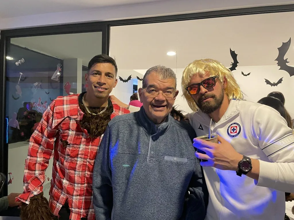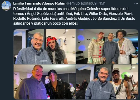 “De festividad del día de muertos con la Máquina Celeste, súper líderes del torneo: Ángel Sepúlveda (anfitrión), Erik Lira, Willer Ditta, Gonzalo Piovi, Rodolfo Rotondi, Lolo Favarelli, Andrés Gudiño, Jorge Sánchez. Un gusto saludarlos y platicar un poco con ellos!“, escribió el veterano reportero en su publicación.
