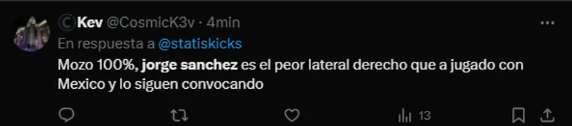 Lastimosamente para su buen presente en La Máquina, Sánchez fue carne de cañón sobre todo en la red social X (ex Twitter). “Basta del maleta de Sánchez”, “el peor lateral derecho que vieron mis ojos” y demás frases catalogaron su participación. Habrá que ver si efectivamente le dan más oportunidades.