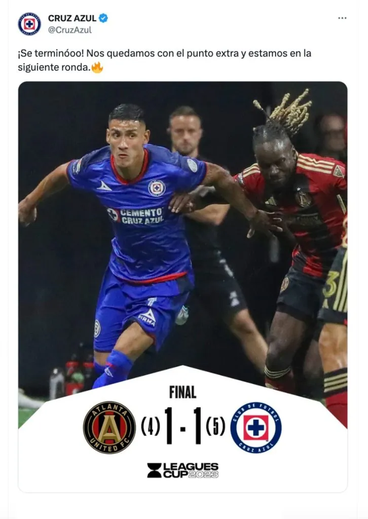 Cruz Azul empató (1-1) en el tiempo regular contra Atlanta United. Sin embargo, el equipo cementero superó (5-4) al cuadro estadounidense en la serie de penales, por lo que clasificó a la siguiente ronda.