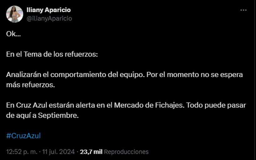 Ahora bien, estas son las caras nuevas que tiene La Máquina hasta el momento el el mercado de pases: ¿Llegarán más? Por lo pronto, la reportera Iliany Aparicio fue contundente: “Analizarán el comportamiento del equipo. Por el momento no se espera más refuerzos“, expresó en su cuenta personal de X.
