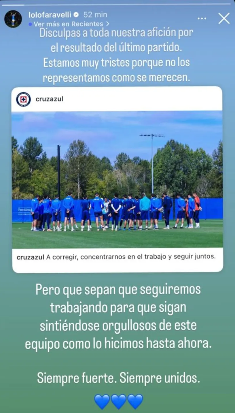 Luego, el argentino dejó en claro que tanto él como el resto de sus compañeros harán hasta lo imposible para revertir la situación: “Pero que sepan que seguiremos trabajando para que sigan sintiéndose orgullosos de este equipo como lo hicimos hasta ahora. Siempre fuerte. Siempre unidos”, concluyó.