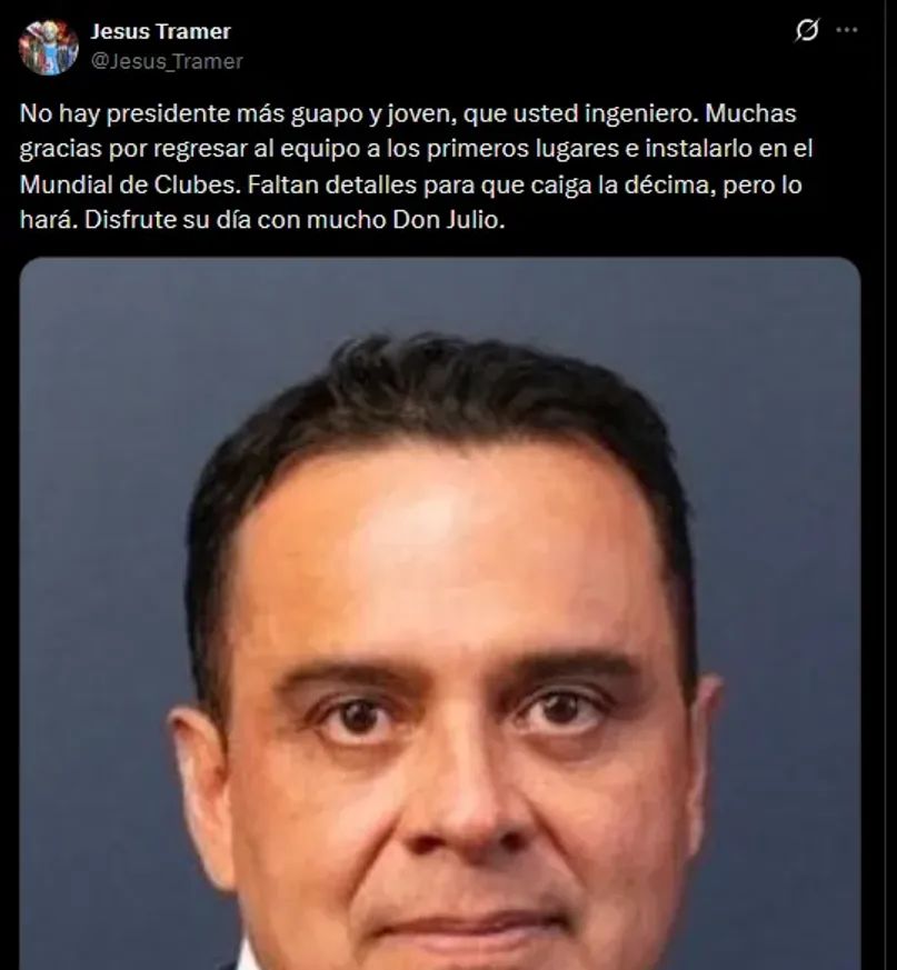 “No hay presidente más guapo y joven, que usted ingeniero. Muchas gracias por regresar al equipo a los primeros lugares e instalarlo en el Mundial de Clubes. Faltan detalles para que caiga la décima, pero lo hará. Disfrute su día con mucho Don Julio”, fue uno de los que más reacciones tuvo al respecto.