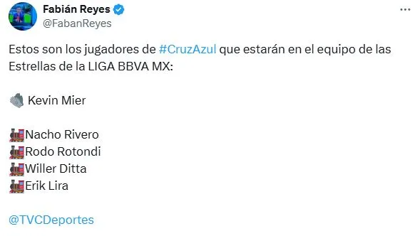 Los futbolistas de Cruz Azul elegidos para representar al futbol mexicano fueron: Kevin Mier, Willer Ditta, Rodolfo Rotondi, Nacho Rivero y Erik Lira. Llamó la atención que elementos como Ángel Sepúlveda o Charly Rodríguez que vienen de ganar la Copa Oro con la Selección Mexicana no hayan sido convocados. Aún así, es una noticia celebrada por Nicolás Larcamón ya que perderá menos jugadores en la previa al compromiso contra León.