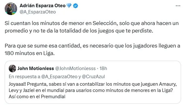 Lo cierto es que en La Máquina no hay preocupación con esta situación debido a que tiene un as bajo la manga. Según informó Adrián Esparza Oteo, los seleccionados cruzazulinos que irán al Mundial Sub-20 sumarán minutos para la Regla de Menores. Esto es algo que ya sucedió el año pasado cuando Martín Anselmi era entrenador de la institución; la única condición para sumar sus minutos es que estos futbolistas deben tener 180 minutos jugados en la liga.