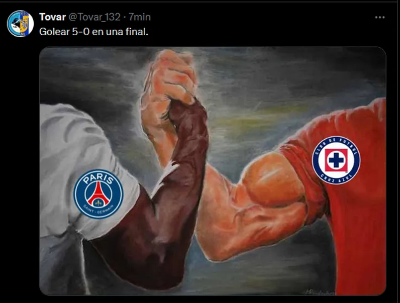 Como era de esperarse, los aficionados (y no solo de Cruz Azul) se esmeraron para hacer divertidos memes. Desde cargadas al rival de turno como el América, comparaciones con lo ocurrido en Europa tras la goleada de PSG y otros tantos focos fueron los que más inundaron las redes sociales.