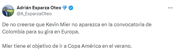 Desde Colombia también mostraron su asombro por la ausencia de Kevin Mier, no solo por el gran momento que atraviesa en Cruz Azul, sino debido a que los arqueros llamados a la Selección sudamericana no presumen los mejores números en sus actuales equipos.