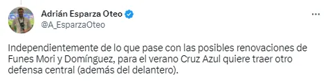 No obstante, a falta de las especificaciones específicas que brinde el estratega para los fichajes de Cruz Azul en el verano, la realidad es que desde La Noria tienen muy claro las dos posiciones que sí o sí buscarán reforzar en la próxima ventana de transferencias: un central y un delantero centro.