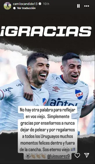 Se trata de Camilo Cándido, quien no dudó en dedicarle un emotivo mensaje de despedida al máximo artillero de la Selección charrúa. Además, recordó un momento histórico en el que aparecen juntos, enfundados en la camiseta de Nacional de su país.