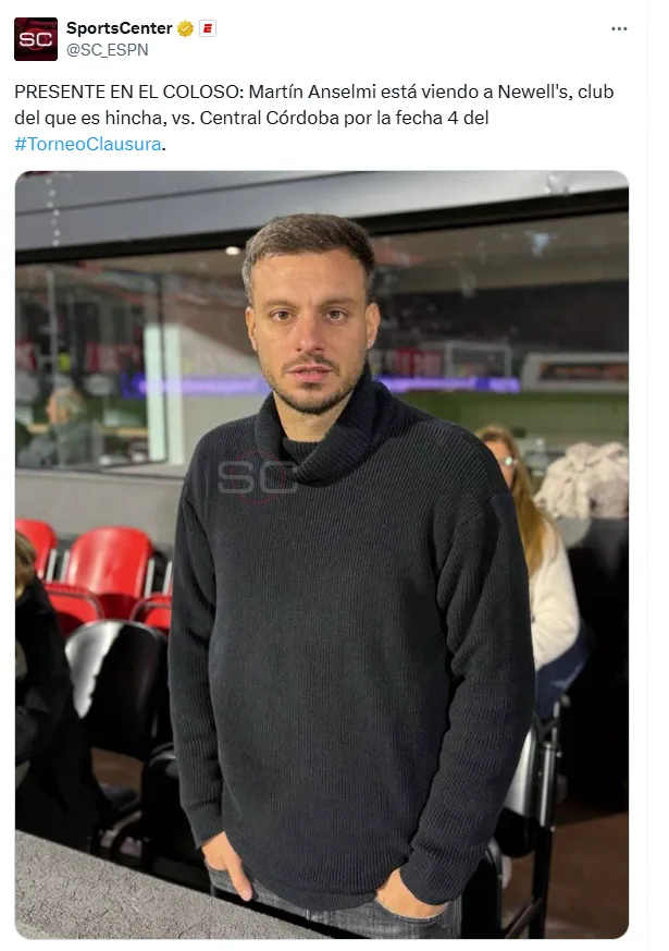 Alejado de los reflectores, Anselmi optó por mantener un perfil bajo durante las últimas semanas en Buenos Aires, hasta ahora. El técnico argentino, que mantiene una gran afición por Newell’s Old Boys, fue captado en las últimas horas presente en el Estadio Marcelo Bielsa de Rosario, disfrutando de un partido de la liga local de la Lepra ante Central Córdoba.