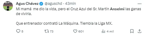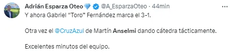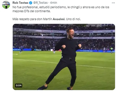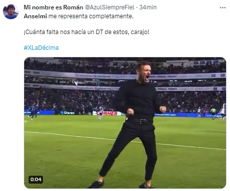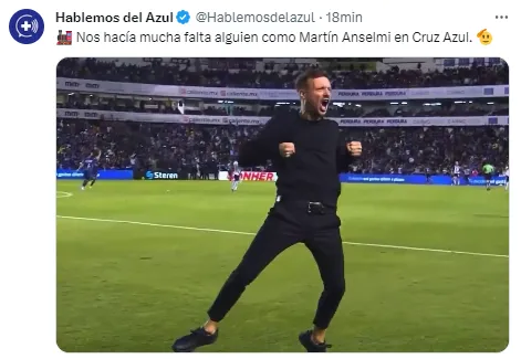 A través de las redes sociales, Anselmi fue aplaudido por una importante porción de aficionados de Cruz Azul. Además, periodistas partidarios y usuarios identificados con La Máquina también le echaron su bendición al estratega argentino. Que dure el romance significará un buen final para el equipo en esta Liga MX…