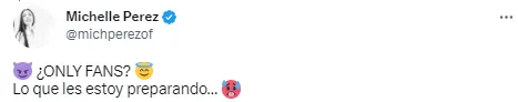 “¿ONLY FANS? Lo que les estoy preparando…”, fue el mensaje que colgó Mich en sus redes sociales, acompañado de una postal muy sensual y que además desenfocó en gran parte, por lo que si bien no confirmó que debutará en esta plataforma, si le dio la esperanza a sus seguidores que desde hace tiempo se lo han pedido. ¿Será?