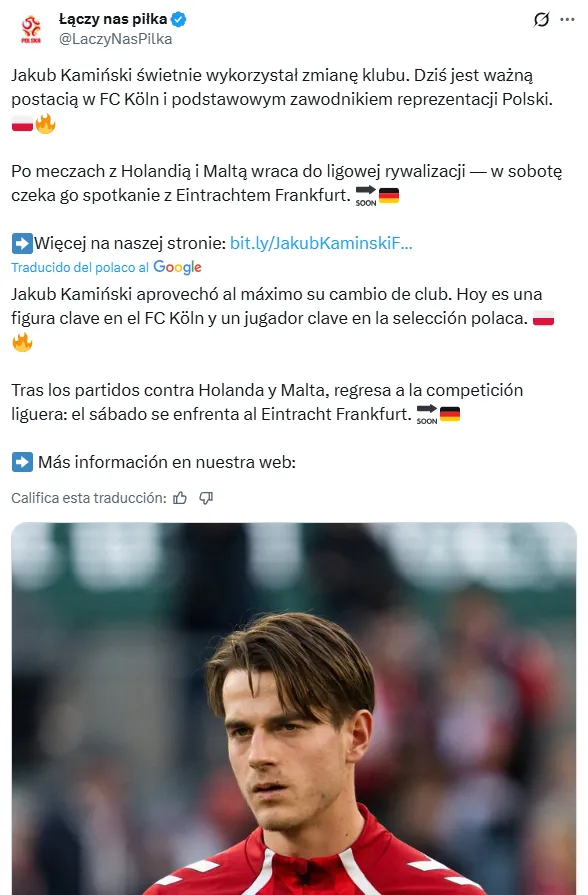 Mientras tanto, desde la Selección de Polonia se expresaron en las redes sociales resaltando a un jugador que competiría en la carrera por ingresar a la lista mundialista de Polonia y que, según apuntaron, ha sabido capitalizar un cambio de equipo en su carrera. “Jakub Kamiński aprovechó al máximo su cambio de club. Hoy es una figura clave en el FC Köln y un jugador clave en la selección polaca“, compartieron en su cuenta de X.