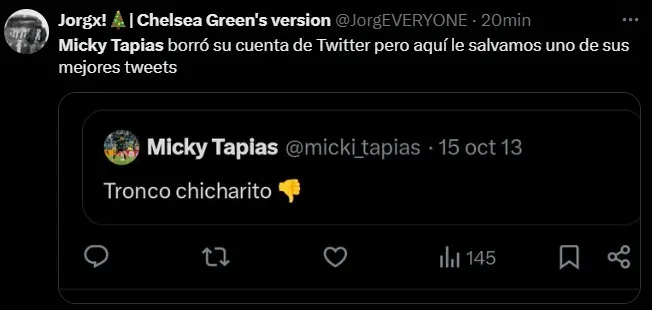Luego de conocerse su posteo viral confesando su afición a Cruz Azul, así como polémicas frases contra Chicharito Hernández y el Club América en el pasado, Miguel Tapias eliminó su cuenta personal de X.