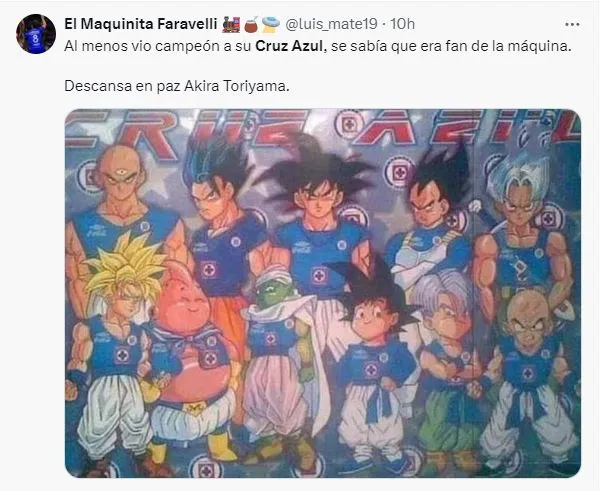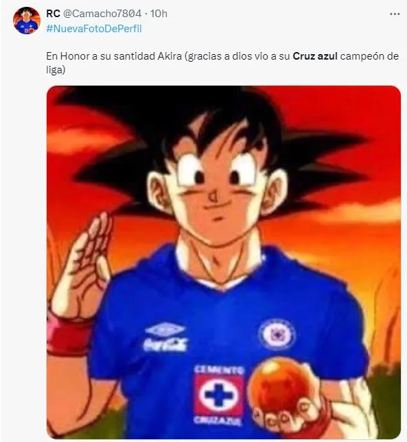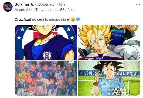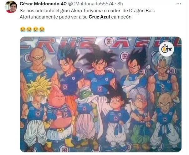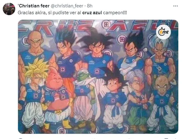 Lo curioso es que, a raíz de esta situación, la afición de Cruz Azul comenzó a publicar diferentes mensajes en honor a Toriyama. Esto no solo se produjo por la nostalgia personal de cada uno de los aficionados, sino también porque en internet se llenó de diseños de personajes de Dragon Ball con playeras de ‘La Máquina’.