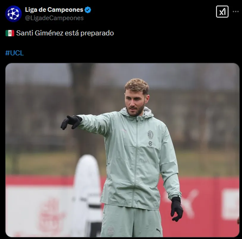 Esta semana el Chaquito vivirá una jornada muy especial por Champions, ya que se va a enfrentar justamente a su ex equipo Feyenoord, por la ida de los 16avos de final de la competencia. “Santi Giménez está preparado”, escribió el CM anticipando lo que sin dudas será un encuentro vibrante.