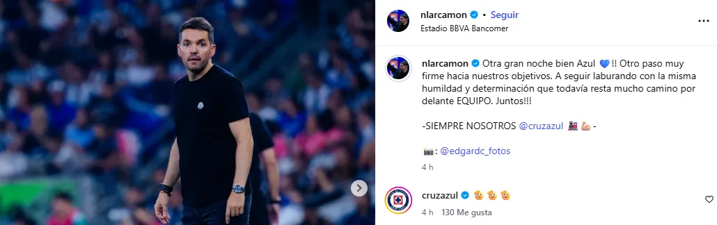 La misma dinámica aplicó el entrenador argentino en sus redes sociales. Además de ponderar lo hecho por los suyos, Larcamón dejó un mensaje que ilusiona pero que deja claro que el trabajo todavía no está hecho y que este Cruz Azul está para mucho más.