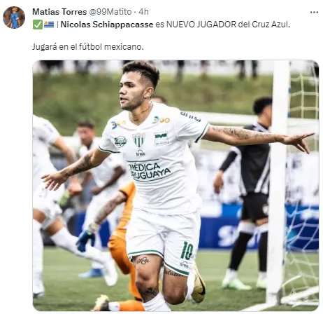 Ante la noticia de que Schiappacasse no pudo incorporarse a las filas del club español, medios uruguayos informaron que el futbolista el destino de este jugador será el futbol mexicano. Y fue un usuario del aquel país quien afirmó en Twitter que el atacante se convertiría en refuerzo de Cruz Azul. Esto no tardó en despertar las búsquedas de información por parte de aficionados cementeros.