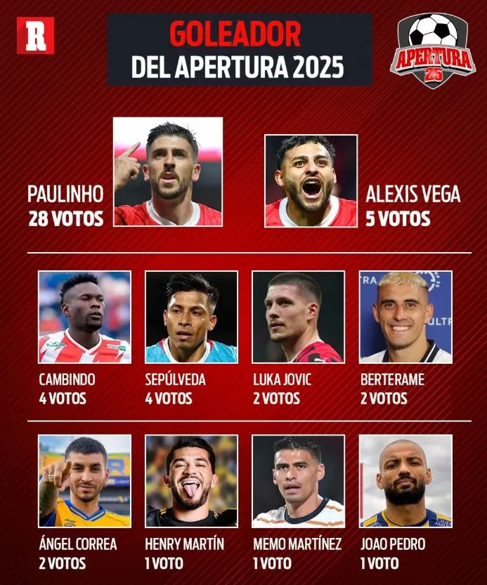 El delantero que más votos recibió fue Paulinho con 28, mientras que Alexis Vega se quedó con el segundo lugar con 5 puntos. Teniendo en cuenta que Jovic llega con 27 años y después de un semestre en el cual sumó muchos minutos con Milan, resulta extraño que no sea favorito. Sobre todo considerando que en los equipos de Nicolás Larcamón suele destacar el delantero centro por el estilo de juego que emplea el entrenador argentino.