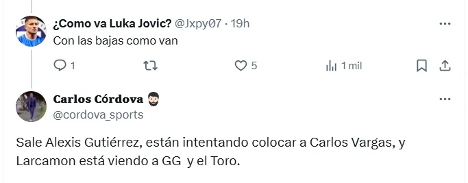 En medio de esta vorágine, una voz autorizada del club puso sobre la mesa la posibilidad de que la lista de salidas no termine con la baja de Alexis Gutiérrez al Club América. Carlos Córdova, reconocido periodista y ex jefe de prensa de Cruz Azul, informó a los seguidores celestes a través de su cuenta de X sobre la situación que atraviesa el equipo en materia de salidas.