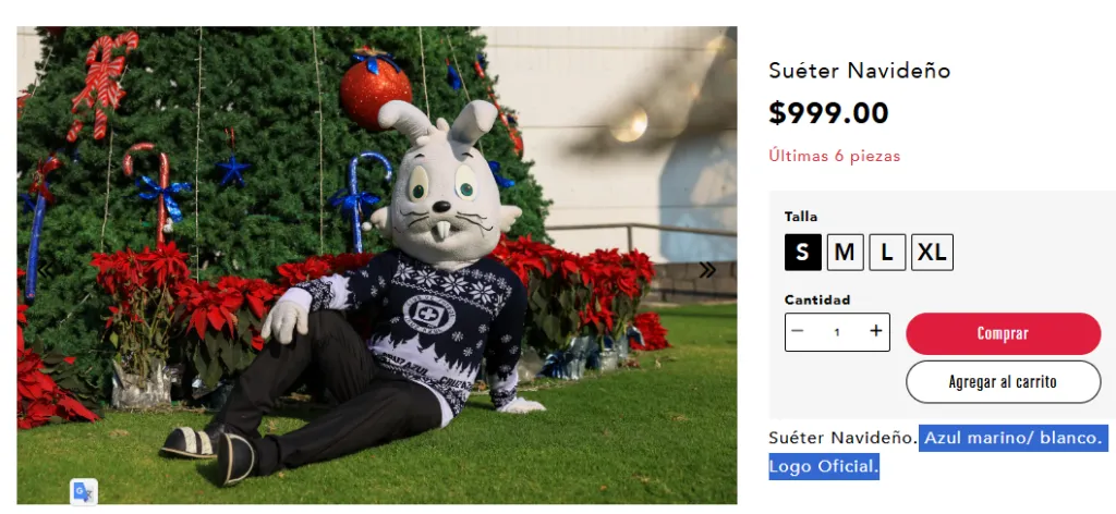 Hay que destacar que el suéter navideño de Cruz Azul ya está disponible en la tienda oficial del club, tanto en tiendas físicas como en línea. Su precio es de 999 pesos mexicanos y todavía se encuentra disponible en una amplia variedad de tallas, desde la S hasta la XL.