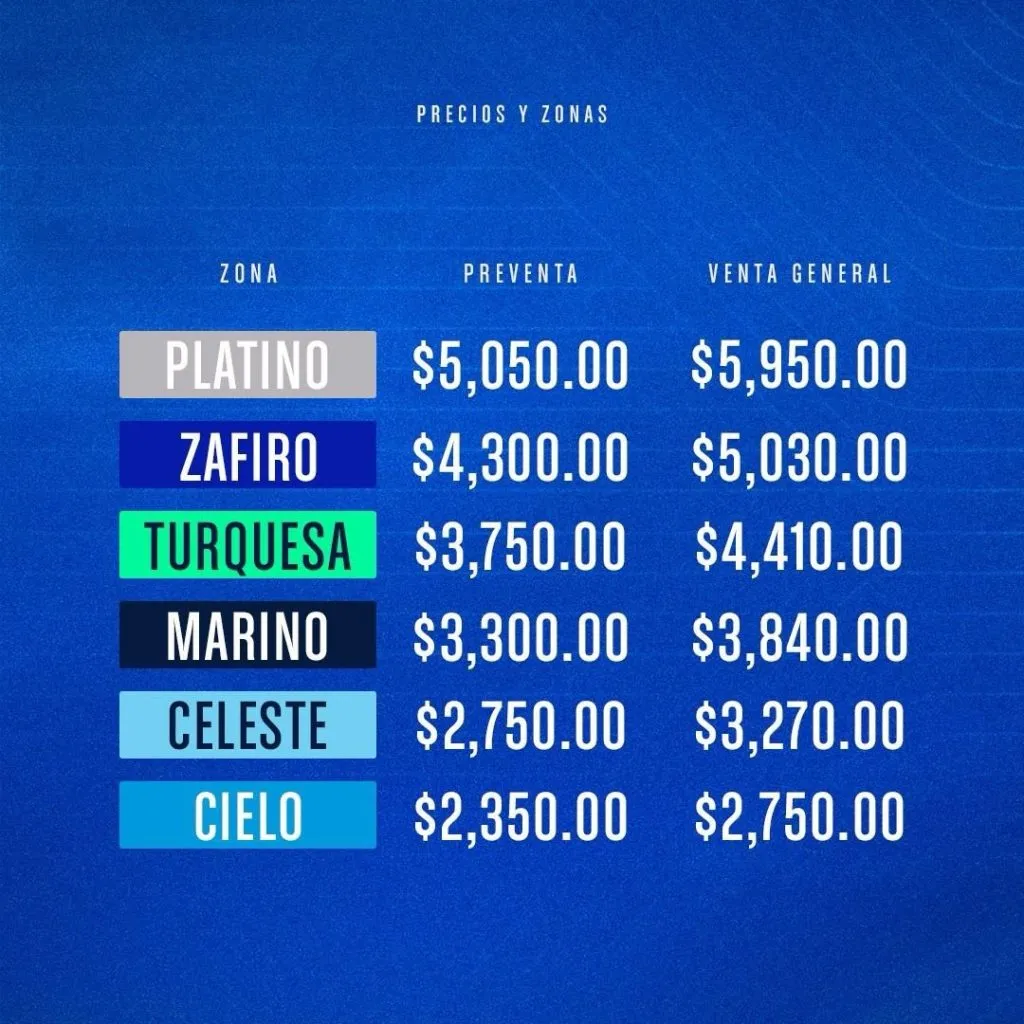 En tanto, la institución cementera reveló los precios que tendrá el PASE AZUL, los cuales irán de los $2,350 a los $5,050 pesos mexicanos para quienes renuevan su abono, mientras que para el público que lo adquiera por primera vez (con posibilidad de adquirirlo hasta el miércoles 10 de enero) tendrán un costo de $2,750 hasta $5,950.