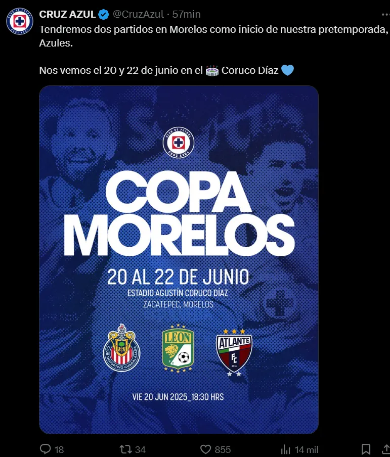 Es por eso que este lunes, la escuadra cementera confirmó a través de sus redes sociales los primeros dos partidos de preparación que sostendrá de cara al comienzo de la actividad el próximo mes de julio, en donde participará en un Cuadrangular en Zacatepec, Morelos.
