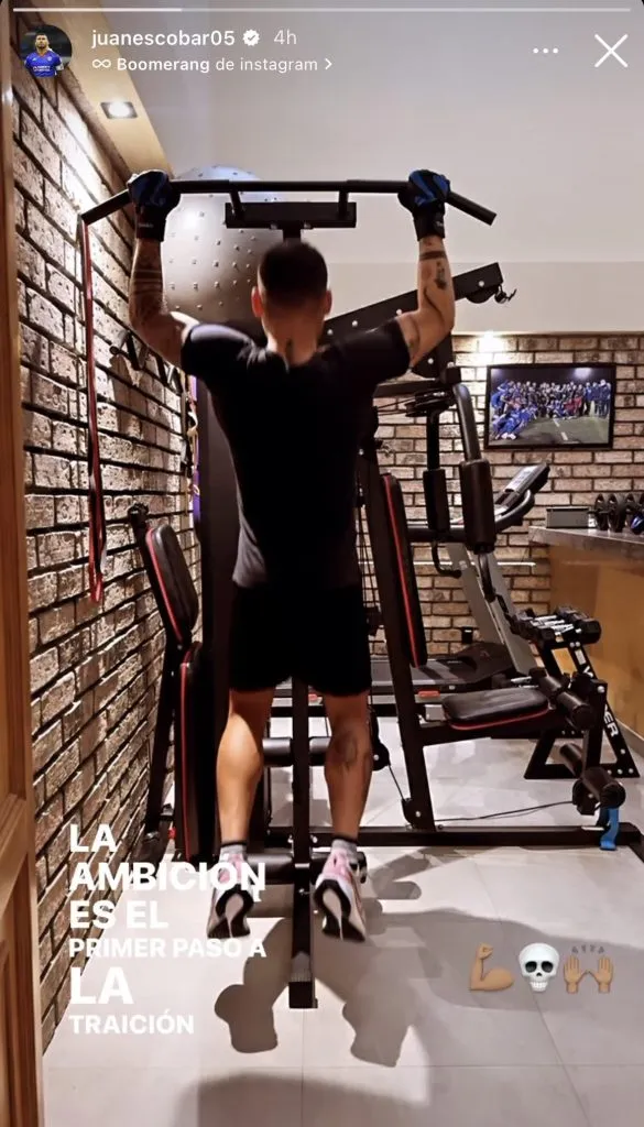En el video ejercitándose, había una canción de fondo sonando. Lo más llamativo fue la frase que Escobar decidió que figure: “La ambición es el primer paso a la traición“. Esto, sumado a emojis que dan que hablar.