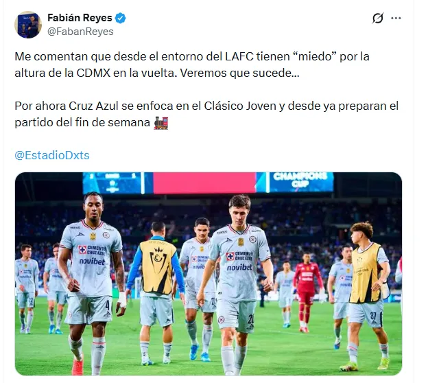 Pero, un factor inesperado podría equilibrar la serie: la altitud. El reportero Fabián Reyes señaló que “Me comentan que desde el entorno del LAFC tienen ‘miedo’ por la altura de la CDMX en la vuelta. Veremos qué sucede…”. La declaración sorprendió a los seguidores de La Máquina, que ven en la geografía un aliado potencial en su intento de remontada.