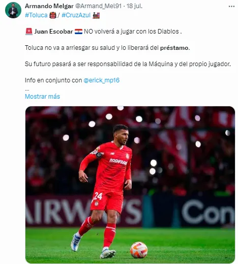 Sin ir más lejos, en las últimas horas se conoció que los Escarlatas decidieron interrumpir el préstamo y cortar el contrato con Juan Escobar, quien debería regresar con Cruz Azul. Aunque con Martín Anselmi no sería tomado en cuenta, sumado a los problemas por el cupo de extranjeros.