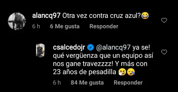 Tras ese mismo, el zaguero no dudó en burlarse de los años de sequía que registró Cruz Azul sin título en la Liga MX: “Qué vergüenza que un equipo así nos gane ‘traveeeezzz’. Y más con 23 años de pesadilla”, remató el jugador.