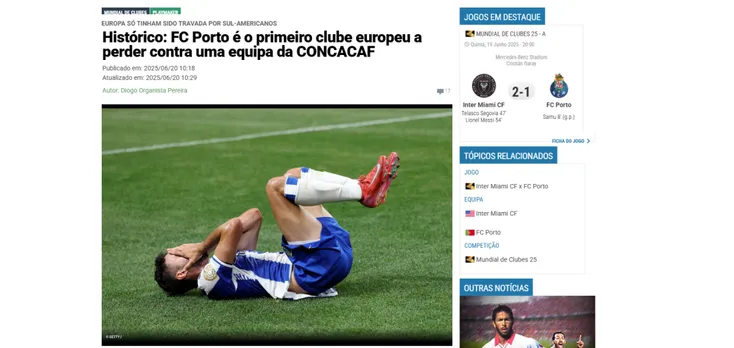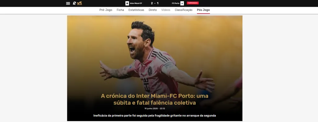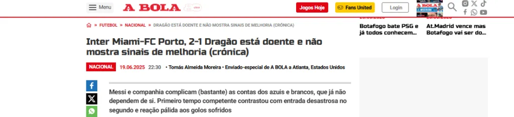 O Jogo, en cambio, subrayó lo que ya empieza a parecer inevitable: “El FC Porto pierde ante el Inter Miami y tiene una vida difícil en el Mundial de Clubes”, destacando que el equipo ahora depende de una combinación casi milagrosa de resultados para seguir con vida.