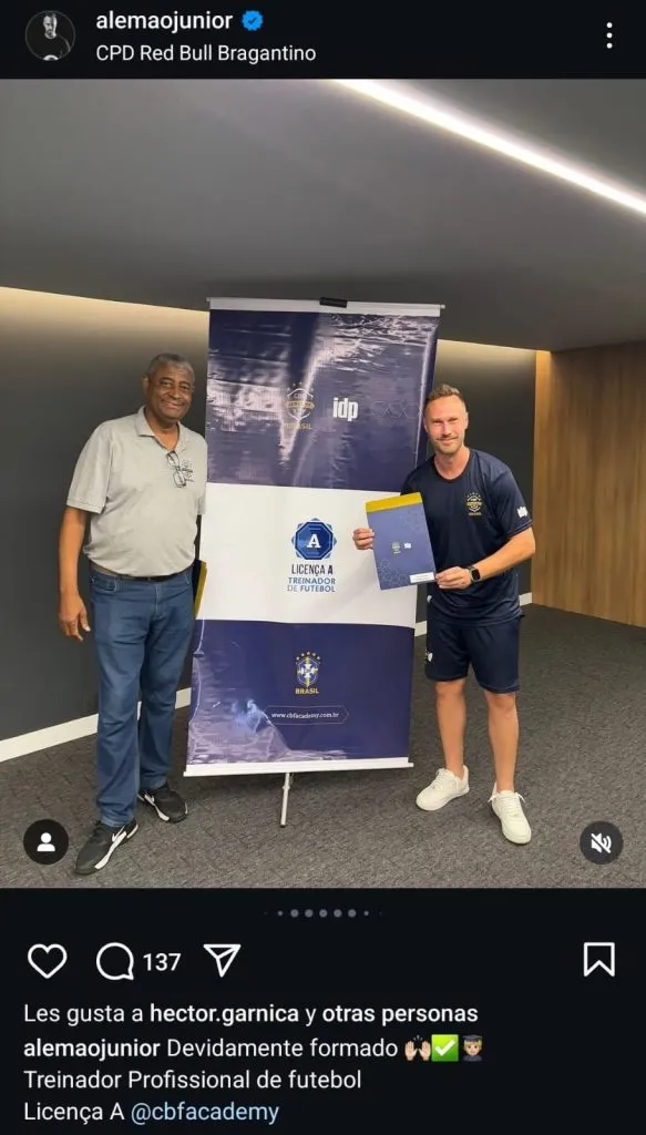 Alemao, ex Cruz Azul y Santos (entre otros), fue anunciado en septiembre de 2024 como director técnico de Atlético Monte Azul, un equipo que compite en la Serie D de Brasil (cuarta división) y en la Serie A3 del Campeonato Paulista (tercer nivel de la liga del estado de Sao Paulo). Decidido a crecer como estratega, en diciembre pasado se graduó y recibió la Licencia A de entrenador que otorga la Confederación Brasileña de Futbol.