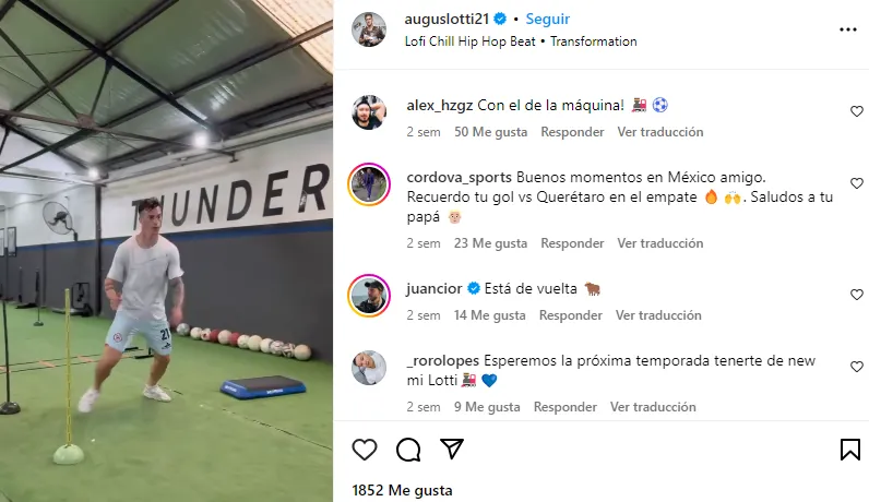 No obstante, Lotti sigue con Cruz Azul muy presente en su día a día. En una de sus últimas publicaciones en Instagram se le vio entrenar en la propia sede de Atlético Platense con la indumentaria del conjunto cementero.