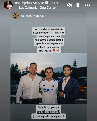 “Que la cuenten como quieran, se dicen muchas cosas, la realidad es que un grupo de jóvenes emprendedores apoyó a otro a lograr el sueño europeo y esto está solo que empieza… ENHORABUENA”, fue la cita que compartió Rodrigo Huescas a través de una historia.