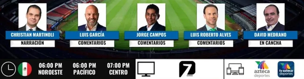 Bajo ese parámetro, resalta que el partido contará con narradores para todos los gustos, pues en cada una de las transmisiones del encuentro que se disputará en el Estadio Azteca participarán diferentes personalidades.