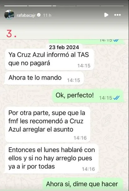Una versión que circuló a raíz de la resolución del Tribunal Arbitral del Deporte es que Rafael Baca había pedido que a Cruz Azul lo sancionen con dos mercados de pases sin poder incorporar. Por supuesto, el futbolista desmintió por completo esta situación y publicó en su Instagram pruebas de que nunca quiso llegar a esta instancia. Al no haber podido llegar a un arreglo con el club, no hubo más remedio que llegar a la determinación del TAS.