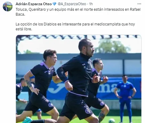 Según informó el periodista Adrián Esparza Oteo en su cuenta de Twitter, “Toluca, Querétaro y un equipo más en el norte están interesados en Rafael Baca”. Y añadió: “La opción de los Diablos es interesante para el mediocampista que hoy está libre”.