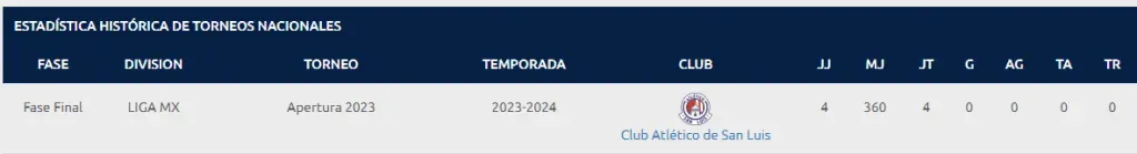 Hay que recordar que el Cata Domínguez logró disputar la Liguilla en el primer torneo que jugó con el conjunto Potosino. Así, disputó el partido de Play In, los dos partidos de los Cuartos de Final y el partido de Ida de la Semifinal frente al América; todos como titular y disputando los 90 minutos.
