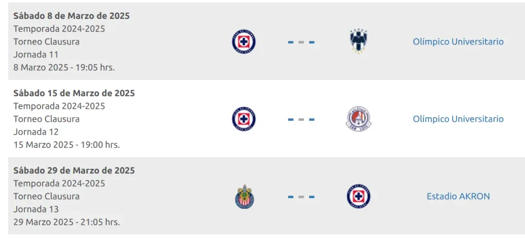 Cruz Azul tendrá un mes más que ajetreado en marzo, debido a la doble competencia entre la Liga MX y la Copa de Campeones de la Concacaf. Y es que, a pesar de que solo tendrá tres partidos en el Clausura 2025, le espera la llave de Octavos de Final en el certamen internacional.