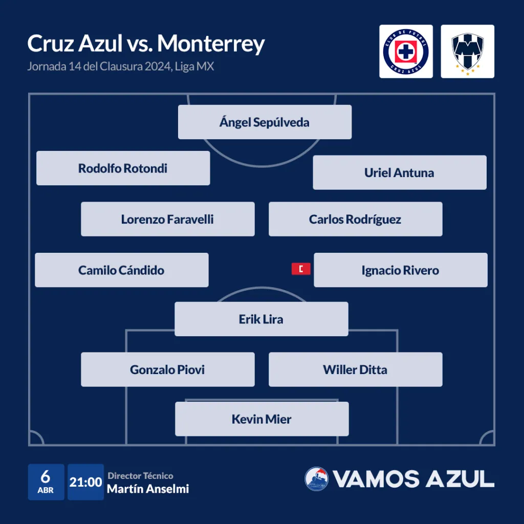 Así, la mediacancha se mantendría intacta con Lorenzo Faravelli y Carlos Rodríguez. Mientras que en el ataque podrían repetir Rodolfo Rotondi y Uriel Antuna por las bandas y Ángel Sepúlveda en punta, como único 9 ante la baja de Gabriel Fernández.