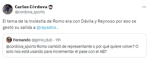 “El tema de la molestia de Romo era con Dávila y Reynoso por eso se gestó su salida a Rayados”, fue la información que destapó el también ex director de comunicación del equipo cementero.