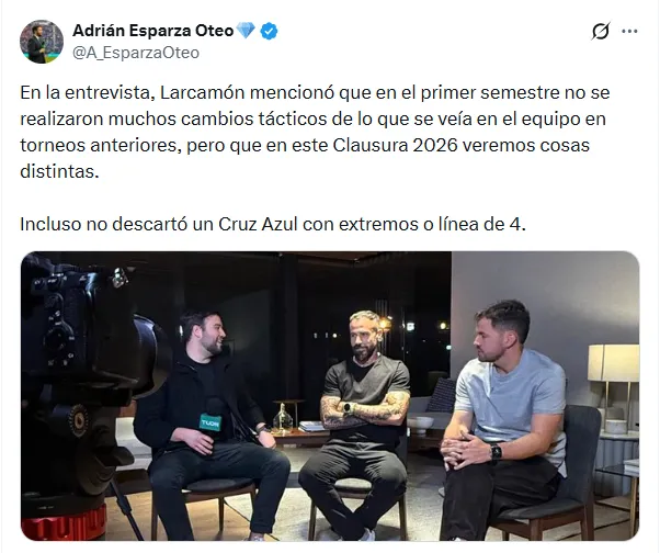 En medio de este contexto apareció una información que puede marcar un antes y un después. Adrián Esparza reveló en X que Larcamón reconoció que durante su primer semestre en La Máquina no hubo grandes cambios tácticos respecto a torneos anteriores, pero que el Clausura 2026 traerá novedades: “Veremos cosas distintas”.