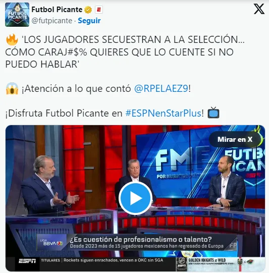 “Los jugadores secuestran a la Selección Nacional de México. ¿Qué pasó en la etapa del Chícharo, Layún y todos esos jugadores? Tuvieron que quitar a varios. Cuando hay competencia deportiva no pasa eso porque todos quieren ir a la Selección de México, todos se matan por jugar y quieren ser titulares. ¿Hoy en día qué competencia tienen estos jugadores? Si estás diciendo que es la misma selección que jugó con Cocca que la que jugó el otro día con Lozano”, fueron las palabras de Peláez en Futbol Picante.