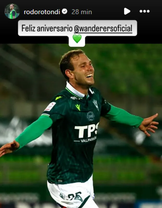 Uno de ellos fue Santiago Wanderers de Chile, en donde permaneció por una temporada y fue titular en casi todo ese ciclo. Justamente el cuadro trasandino cumple este día 15 de agosto 133 años de vida, por lo que Rodo los saludó de manera afectuosa con una playera mientras celebraba un gol.