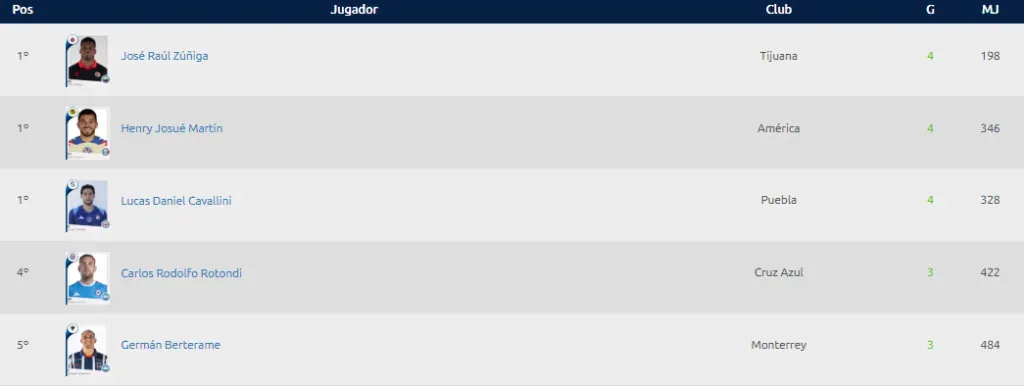 Así luce la Tabla de Goleo en la Jornada 5