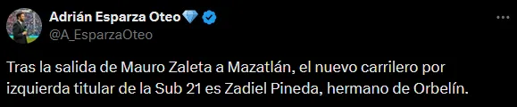 Ahora bien, la salida del joven abrió un espacio en la Sub 21 cementera. El periodista Adrián Esparza Oteo reveló que el encargado de tomar ese lugar es Zadiel Pineda, hermano de Orbelín, quien ya se perfila como el nuevo titular por la banda izquierda. De esta manera, el cementero apunta a mantener la proyección de sus fuerzas básicas sin perder dinámica en posiciones clave.