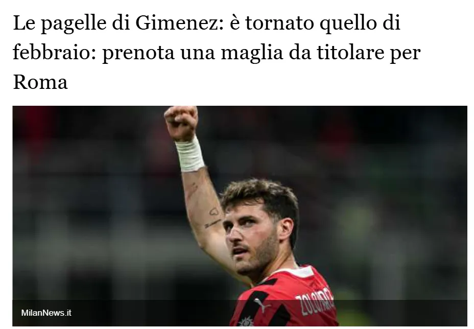 Por su parte, Tuttosport señaló que “el doblete inicial de Giménez con la camiseta rojinegra fue decisivo. Vivió una noche mágica. Volvió a marcar y sigue recuperando confianza“. “Ha vuelto el Giménez de febrero, doblete de gran calidad y una entrada al campo que partió el partido. Tres goles y una asistencia en los últimos tres partidos”, sentenció el Corriere dello Sport.