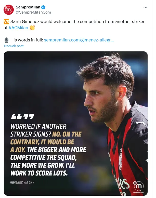 No obstante, si el AC Milan suma un nuevo delantero, la pregunta que queda en el aire es: ¿podrá Santiago Giménez mantener su lugar en el equipo y seguir brillando en el más alto nivel dentro de Italia?