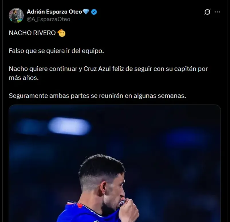 De todos modos esto estaría muy lejos de pasar y habría Nacho para rato. Así lo reveló el periodista Adrián Esparza Oteo en su cuenta personal de X, despejando así algunos rumores que comenzaron a ganar notoriedad en las últimas semanas. “Nacho Rivero, falso que se quiera ir del equipo“, esbozó en primer lugar.