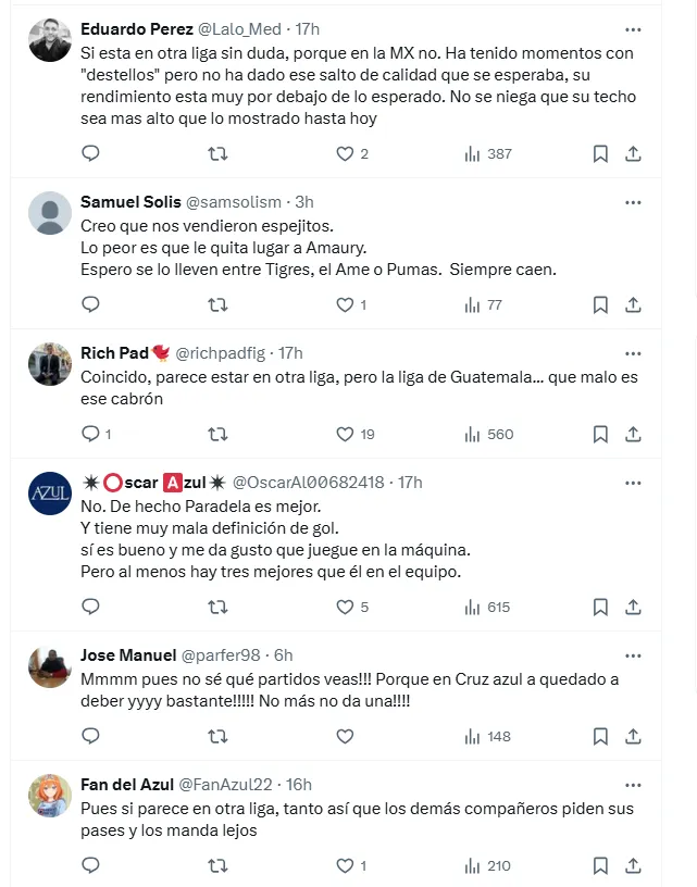 Las redes sociales no tardaron en reflejar la frustración de los aficionados celestes con el rendimiento de Bogusz. Muchos coinciden en que, hasta el momento, no ha mostrado el nivel esperado: “Jajaja este wey si no ofrece algo más esta temporada, se tiene que ir” o “a este paso le va ir igual que al griego y el otro torneo bye“, comentan algunos. Mientras, otros opinan que “parece estar en otra liga, pero la liga de Guatemala… qué malo es ese cabrón”.